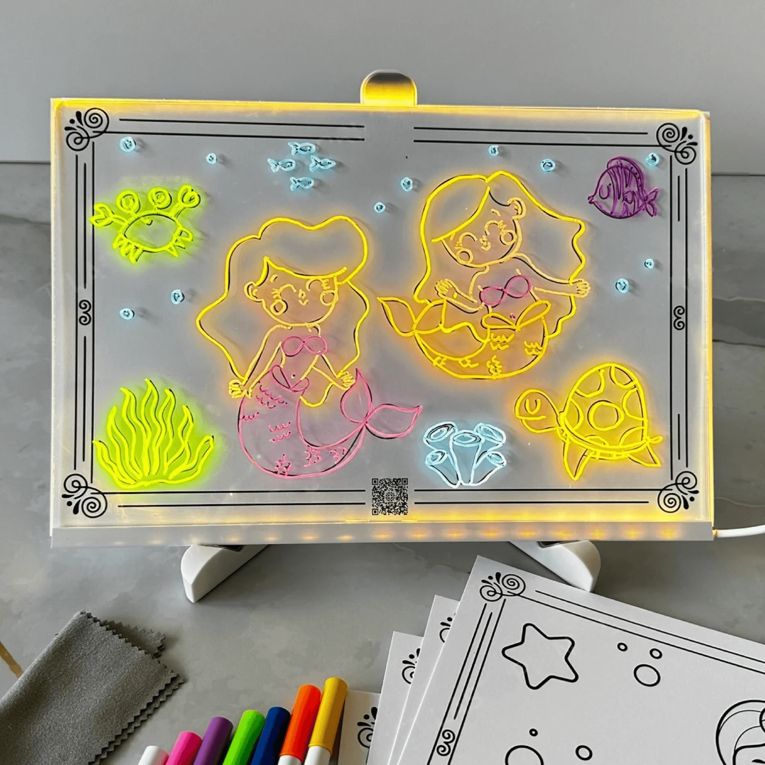 Watch as their simple sketches glow with vibrant LED light, turning into glowing masterpieces. This fun, interactive experience encourages creativity and lets young artists experiment, express, and refine their skills—all while having a blast!